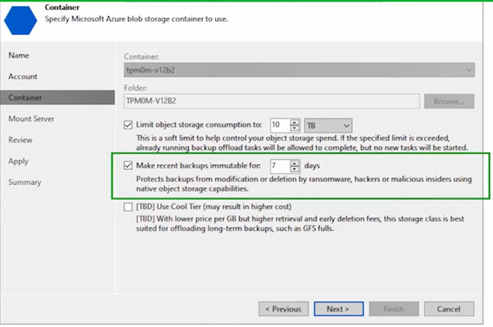 V12 also bring immutability support for both Azure Blob storage and Veeam first Deduplication appliance immutability in the form of the HPE StoreOnce.